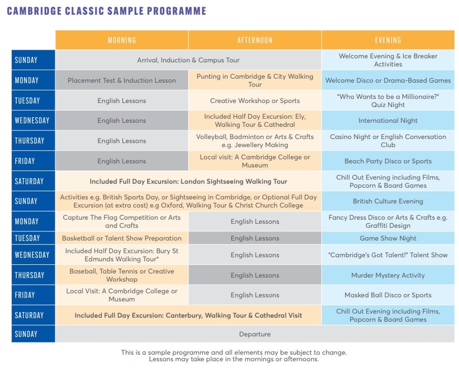 Programa katılan öğrenciler haftada 15 saat Genel İngilizce eğitimi alırlar. Öğrenciler kurs başlangıcında yapılan seviye testine göre sınıflara ayrılırlar.